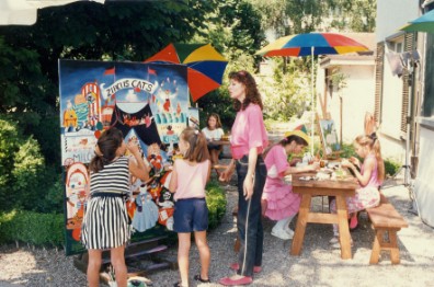 Bereits anfangs der achtziger Jahre präsentierte ich mit gutem Erfolg meine ersten Bilder – allesamt Katzenportraits – und kriegte prompt meinen Stempel als Katzenmalerin. Es folgten in der inzwischen gegründeten Malschule Kurse für Kinder, Eltern und Grosseltern sowie Ausstellungen in der näheren und weiteren Umgebung. Für Pro Juventute veranstaltete ich jeweils den «Büsi-Tag», an dem Jugendliche Steine mit Katzensujets bemalten, im Freizeitzentrum «Schälehuus» in Meilen erteilte ich verschiedenste Kurse für Jung bis Alt. Gleichzeitig beteiligte ich mich am Aufbau eines Netzwerks unter ortsansässigen Künstlerinnen und Künstlern.